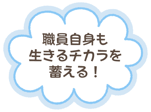 子ども達と一緒に新しい経験がたくさん出来るので職員自身も生きるチカラを蓄える事ができます♪